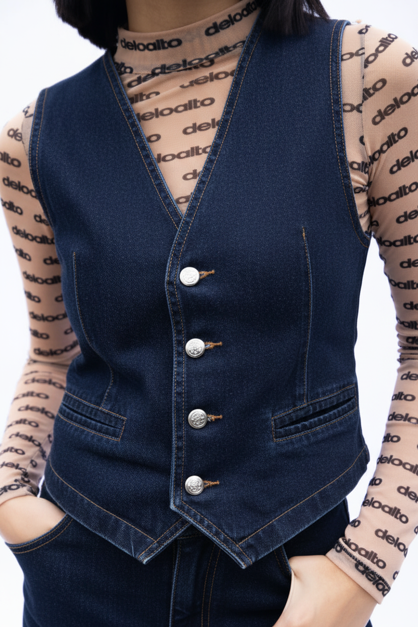 Chaleco sastrero clásico pero denim! Amor a primera vista para muchos. Le da un toque extra a cualquier outfit que te pongas, y si lo combinas con jean al tono queda impresionante!