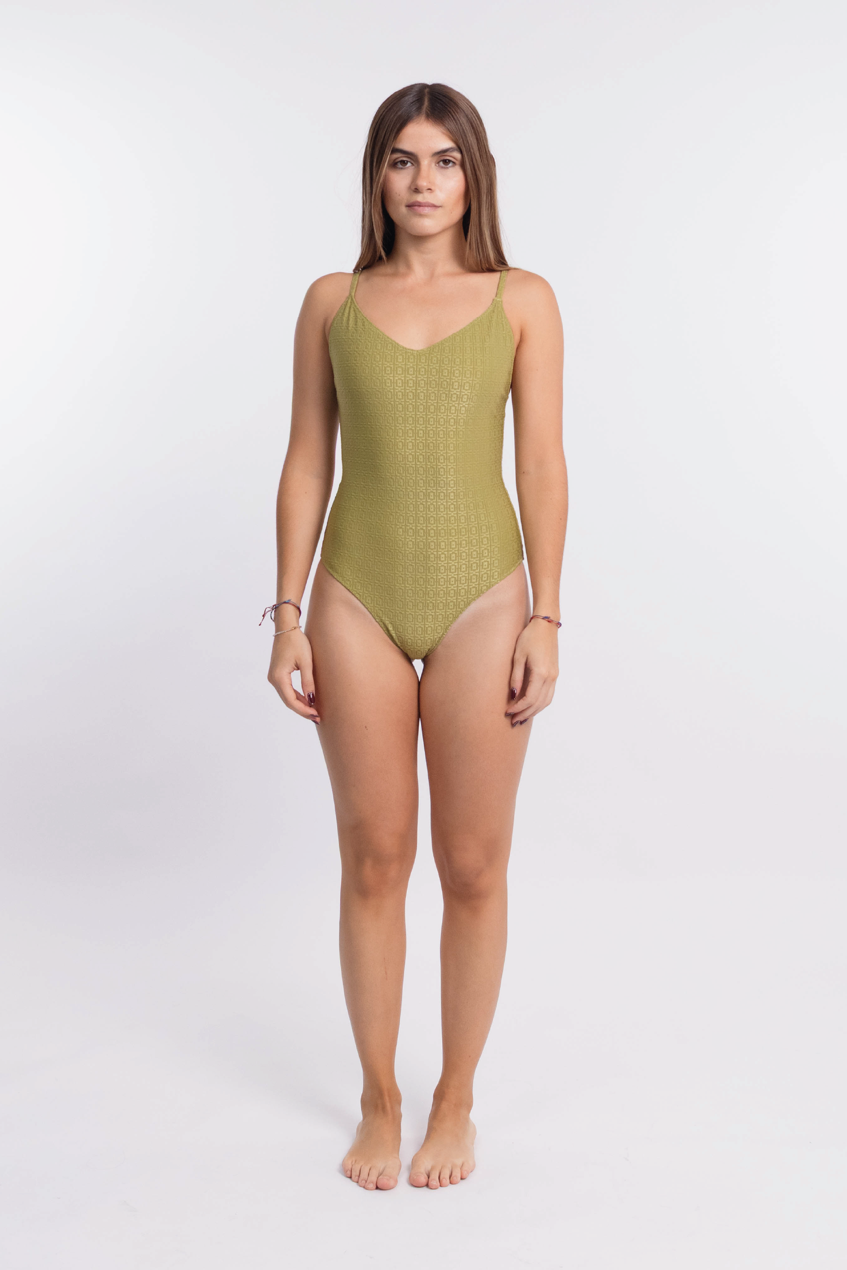 Malla vedetina y escote en V, la malla clásica de siempre. Breteles regulables en la esplada. También podés usarla como body en la noche.